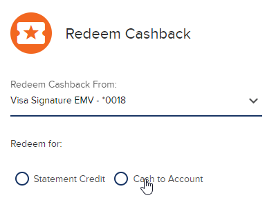 Screenshot of digital banking app, showing to choose how you want to redeem your Cashback.